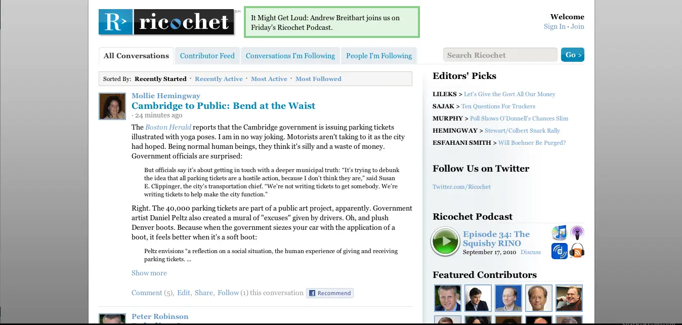 Like any great conversationalists, we've brought our experiences, our personalities, and our predilections to the table. Politically, we're spread across the right of center. Culturally, we're spread across the whole range of human endeavor -- with distinguished careers and rich lives in politics, music, law, medicine, movies, industry, finance, and more.